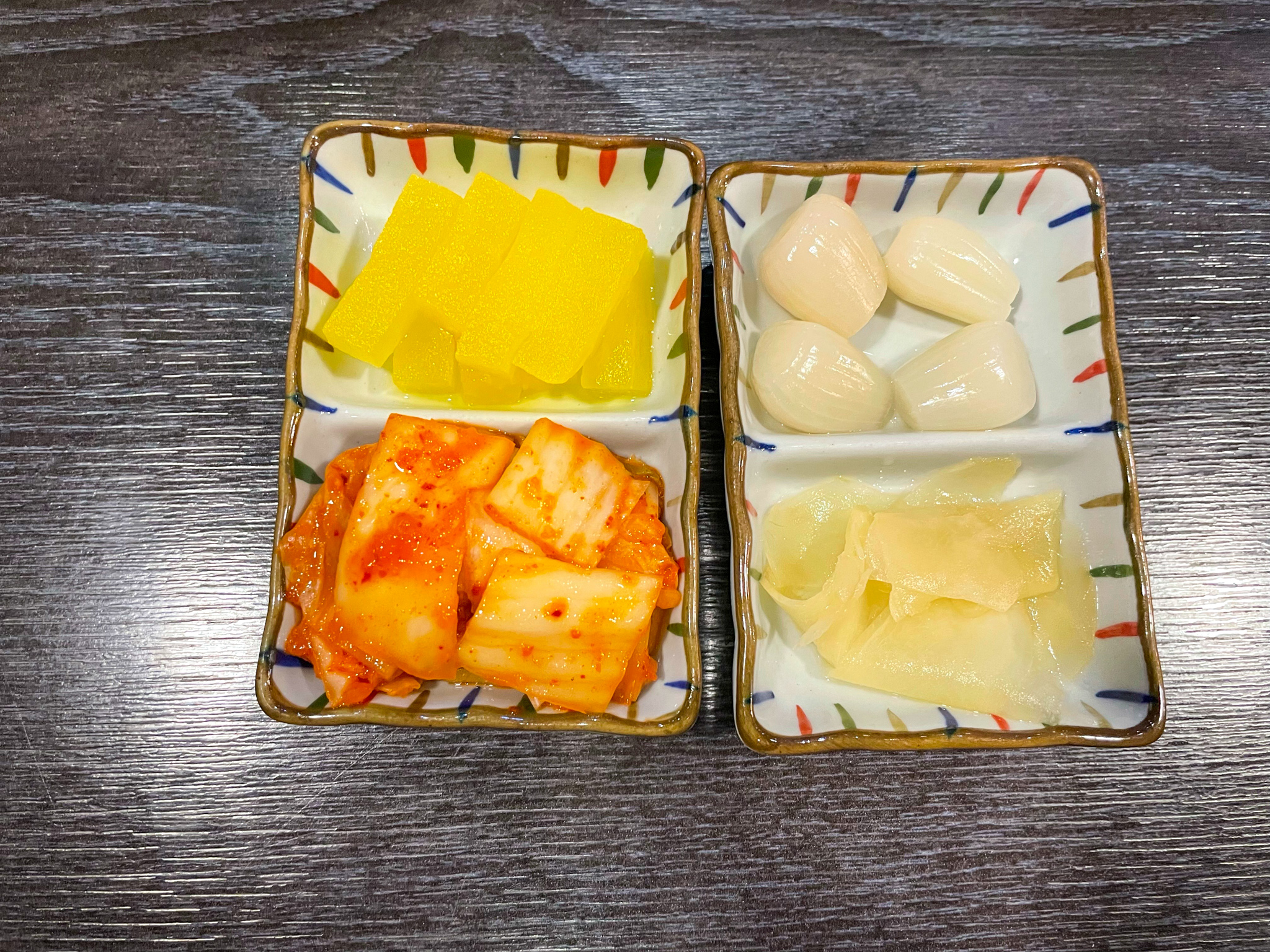 기본찬 같은 경우는 단무지와 김치가 나옵니다. 초밥을 주문해서 락교와 초생강도 함께 나왔습니다.