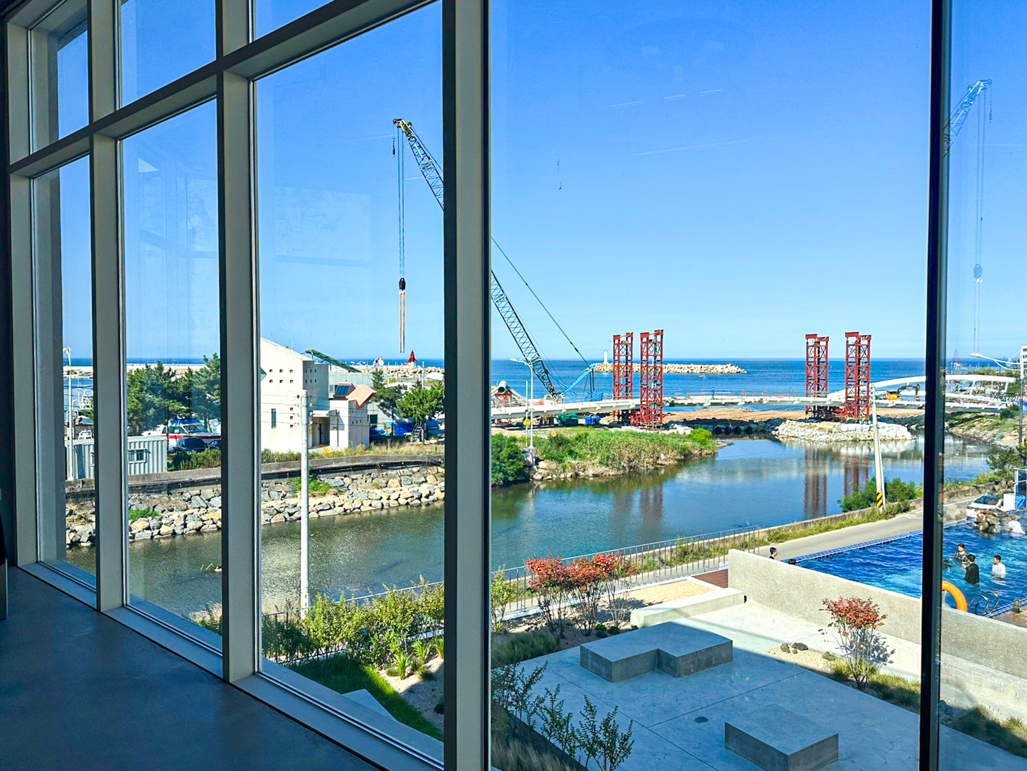 카페 uuuu의 외관 입니다. 깔끔한 화이트톤으로 되어있고 벽면이 전부 통창으로 되어있어서 바다뷰를 즐길 수 있도록 만들어져 있는데요. 언뜻 보면 카페가 아니라 미술관이라고 해도 믿을만한 모습입니다.