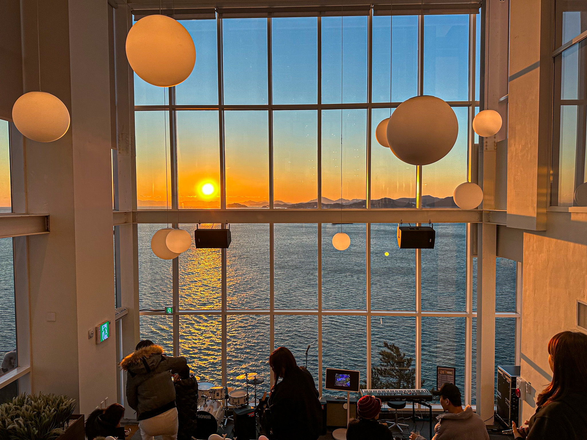 시간이 조금 지나니 노을이 지기 시작했습니다. 해질 시간이 되면 건물쪽에 조명이 켜지기도 했습니다.