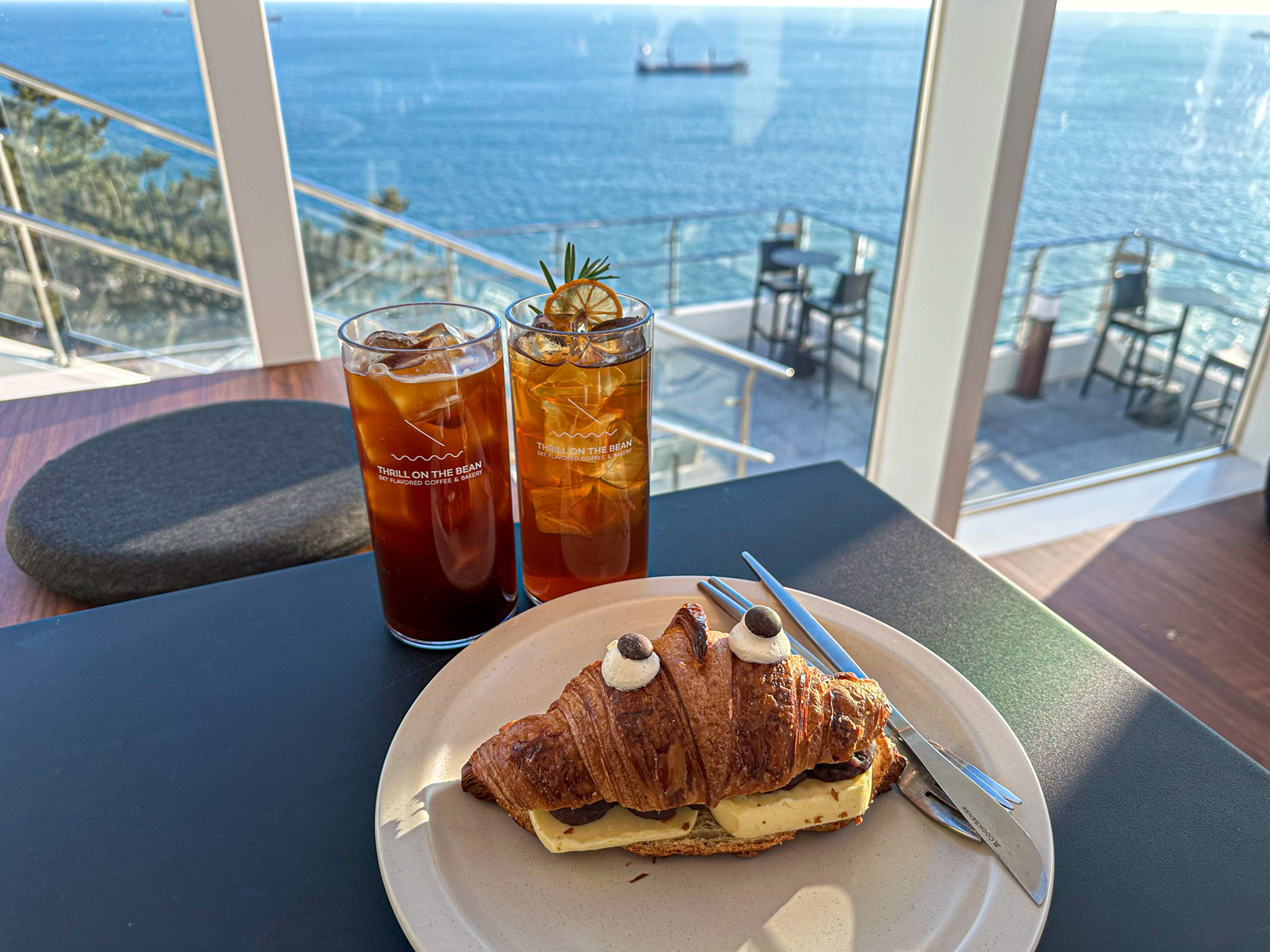외부에도 좌석이 있으니 날씨가 풀리면 여기서 앉아서 바다뷰를 감상하는것도 넘 좋을 것 같다는 생각이 들더라고요. 제가 방문했을 때는 날이 좀 쌀쌀해서 실내에 있었습니다.