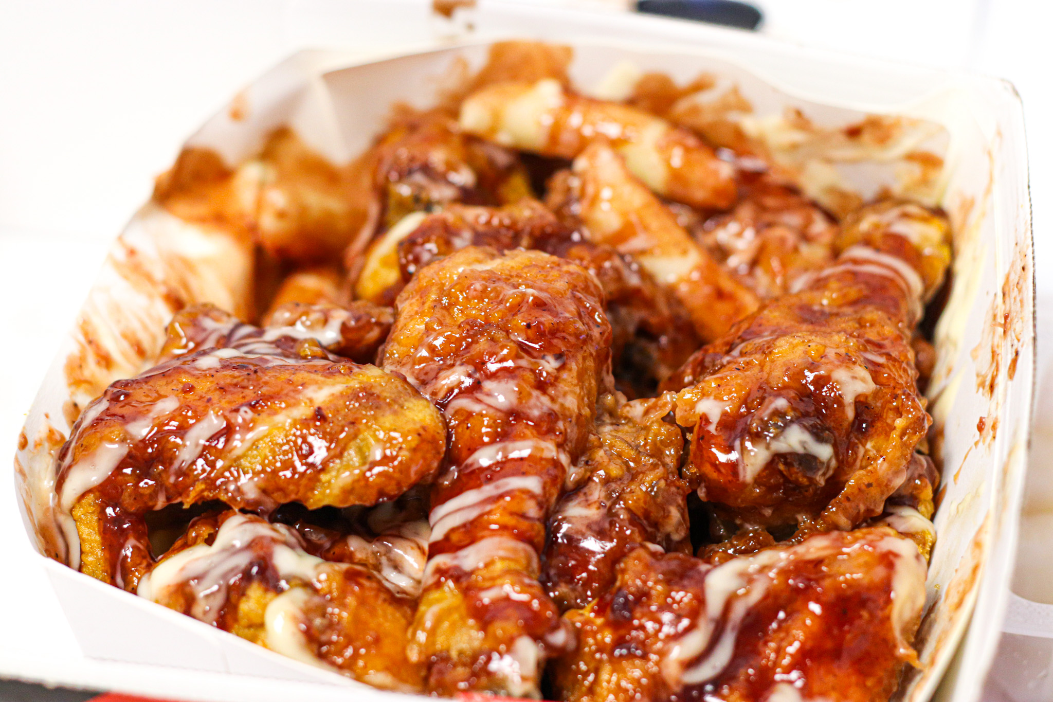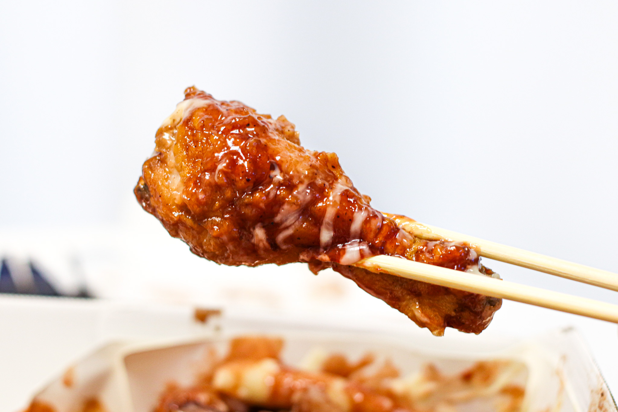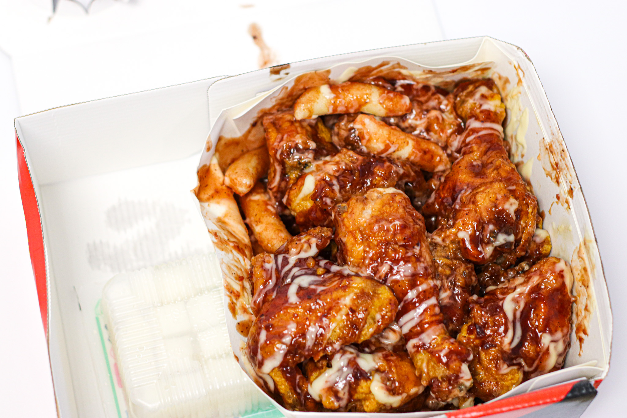 치킨부터 한 입 먹어봤습니다. 짭쪼름한 치킨 베이스에 상큼 달달한 소스가 더해지니 중독성이 장난아니었는데요. 버무려서 만드는 방식이 아니라 위에 소스를 듬뿍 뿌려 나오는 것이기 때문에 후라이드 만큼은 아니지만 어느 정도 바삭함도 즐길 수 있었습니다. 은은하게 느껴지는 소스의 향이 꽤나 매력적이게 느껴졌습니다.